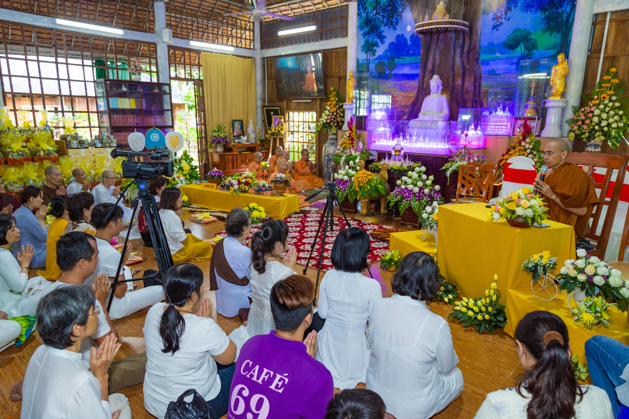 Tiếp sau, Phật tử vân tập vào ngôi chánh điện để cử hành nghi thức dâng y Cīvarapūjā đến quý sư cô tu tập an cư tại chùa Như Pháp trong mùa hạ Phật lịch 2563 dưới sự chứng minh của chư tăng.