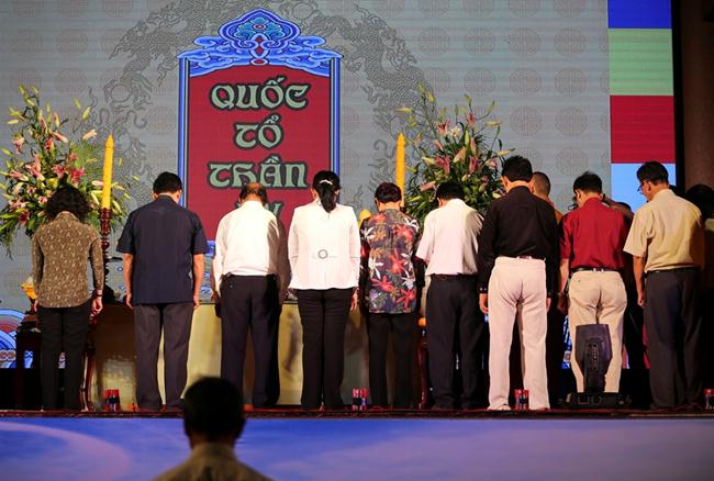 Tại buổi Lễ, sau nghi thức tâm linh cầu Quốc thái Dân an do Chư tôn đức Tăng đảm trách, các vị Cán bộ lão thành, những vị Quan chức của tỉnh đã niêm hương cầu nguyện trước bàn thờ Quốc Tổ Hùng Vương.