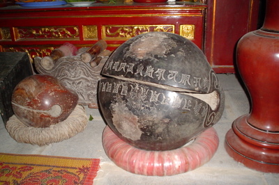 Ngoài bộ kinh đặc biệt đó thì đồ thờ tự trong chùa cũng khá lạ mắt. Từ chiếc mõ nhà sư dùng khi tụng kinh có chiều dài gần nửa mét, sơn đen bóng cho đến một số cây đèn gỗ, bát nhang có kích thước lớn là những di vật quý hiếm thấy.