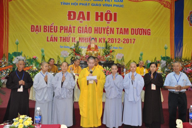 Về phía chính quyền có bà Đỗ Thị Ủy – Phó Ban dân vận Tỉnh ủy; bà Phạm Thị Điểm – Phó giám đốc sở nội vụ – Trưởng Ban Tôn giáo tỉnh Vĩnh Phúc; ông Nguyễn Xuân Viễn – Ủy viên Ban thường vụ Huyện ủy, Phó Chủ tịch UBND huyện Tam Dương cùng đại diện lãnh đạo các cơ quan ban ngành, chính quyên sở tại, đại diện Phật tử tiêu biểu của 12 xã, 01 Thị trấn trong địa bàn huyện về dự Đại hội.