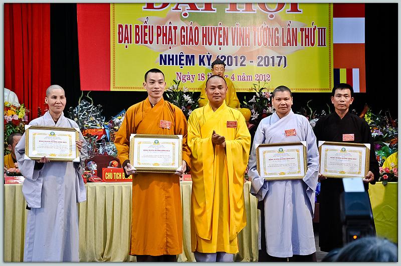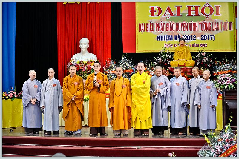 Sau khi Ban đại diện cũ tuyên bố mãn nhiệm. Đại hội thông qua nhân sự Ban đại diện Phật giáo huyện Vĩnh Tường khóa III nhiệm kỳ 2012 – 2017. các thành viên Tân Ban đại diện ra mắt trước Đại hội gồm 11 vị Tăng Ni do Đại đức Thích Nguyên Cao tái cử làm Chánh Đại diện.