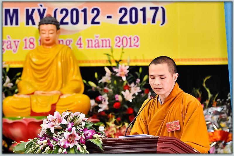 Sau nghi lê Chào quốc kỳ, đạo kỳ và niệm hồng danh đức Bản Sư Thích Ca, Đại đức Thích Viên Quang tuyên bố lý do giới thiệu thành phần tham dự. Tại buổi lễ Đại đức Thích Nguyên Cao – Chánh đại diện Phật giáo huyện Trưởng Ban tổ chức đại hội đọc diễn văn khai mạc. Sư cô Thích Đàm Thu đọc báo cáo tổng kết công tác Phật sự nhiệm kỳ II (2007 – 2012) và phương hướng nhiệm kỳ III (2012 – 2017).