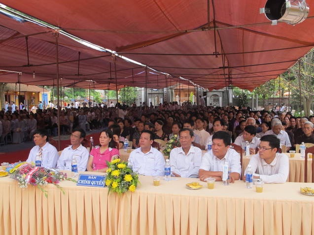 Trong không khí trang nghiêm và hoan hỷ  của hàng ngàn Phật  tử, ông Nguyễn Khắc Thành, Bí thư Chi bộ  Đảng  và bà  Nguyễn Thị Hương Lan, Phó trưởng phòng Phật tử  Nội vụ  tôn giáo  tỉnh Vĩnh Phúc  đã tặng hoa chúc mừng ngày Đại lễ .