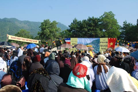Chứng minh buổi lễ có chư tôn đức HT HĐCM, HT. Thích Thanh Chỉnh, HT. Thích Mật Trọng, HT. Thích Nhật Quang. TT Thích Thanh Điện, TT. Thích Chiếu Tạng, ĐĐ. Thích Chiếu Tuệ, NT. Thích Đàm Hảo, NT. Thích Đàm Kim cùng chư Tôn đức Tăng Ni BTS tỉnh hội Phật giáo Vĩnh Phúc và Thiền phái Trúc Lâm Yên Tử, Đà Lạt, Tây Thiên và hàng nghìn tín đồ Phật tử thập phương.