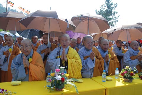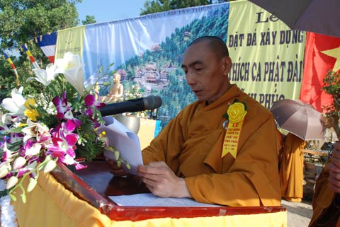 Tại buổi lễ, TT. Thích Thông Phương  – Phó ban quản trị Thiền phái Trúc Lâm – Trụ trì Thiền Viện Trúc Lâm Yên Tử, Thiền Viện Trúc Lâm Đà Lạt đọc diễn văn khai mạc. TT. Thích Kiến Nguyệt – trụ trì Thiền viện Trúc Lâm Tây Thiên đỉnh lễ chư tôn đức Giáo phẩm GHPGVN, đọc báo cáo chương trình chuẩn bị cho việc đặt đá xây dựng Thích Ca Phật Đài  – Vĩnh Phúc.