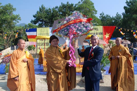 Chủ tịch UBND tỉnh Vũng Phúc tặng hoa cho HT. Thích Nhật Quang – đại diện Thiền phái Trúc Lâm Yên tử