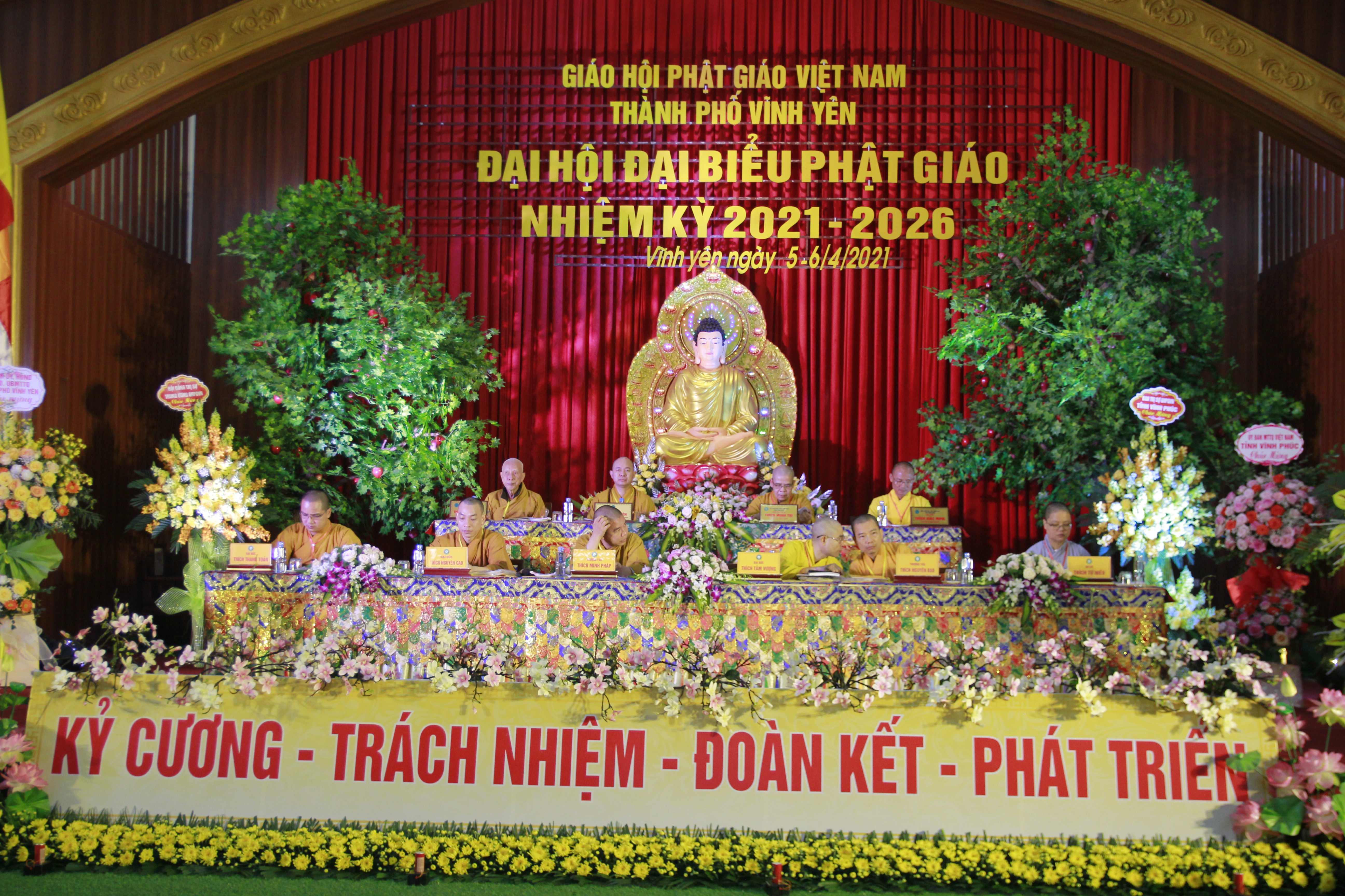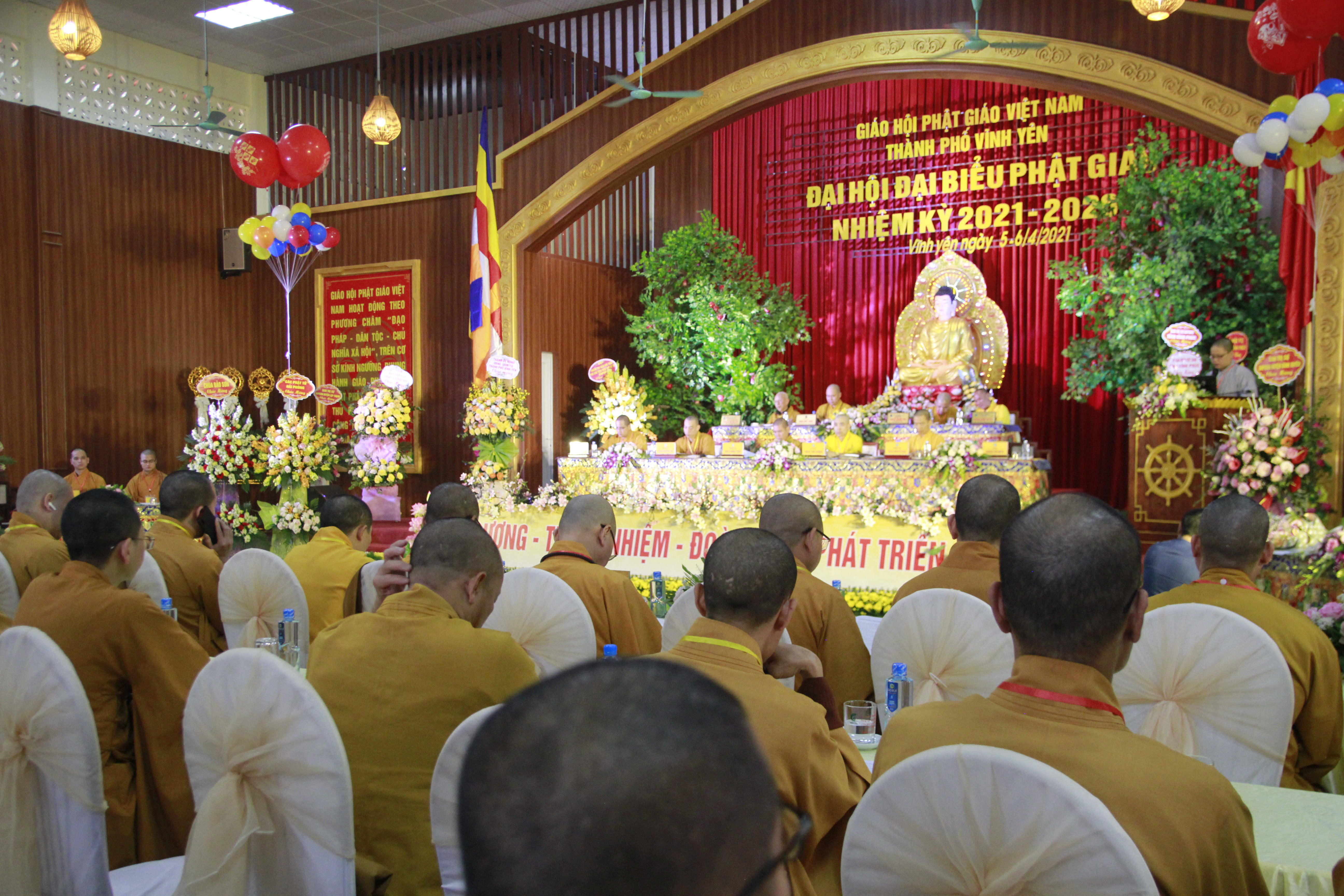 Sau khi đại hội đã thông qua báo cáo các công tác phật sự nhiệm kỳ 2016-2021 và tiến hành triển khai dự thảo công tác Phật sự trong nhiệm kỳ 2021-2026; tập trung tham luận về việc tham gia công tác từ thiện xã hội; định hướng, phương pháp tu học thiết thực của cư sĩ phật tử. Tại Đại hội, sau khi giới thiệu và tiến hành biểu quyết nhân sự tham gia Ban Thường Trực BTS nhiệm kì mới, quý Tăng- Ni trong địa bàn thành phố Vĩnh Yên đã tiến hành suy cử và bầu ra BTS GHPG thành phố nhiệm kỳ 2021- 2026 gồm 15 thành viên, đại diện cho Tăng- Ni gồm 5 UVBTT; 9 UV phụ trách