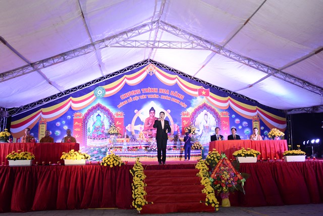 Trong bài đạo từ của mình, Đại đức chứng minh tối cao đại lễ đã khẳng định sự gắn kết giữa Phật giáo và Dân tộc với chủ chương của Giáo hội đã đề ra: “ Phật giáo luôn đồng hành cùng dân tộc”, Phật giáo và Dân tộc như nước với sữa, tuy hai mà một. Luôn đoàn kết xây dựng cho Đất nước của chúng ta ngày càng phát triển. Đồng thời qua đây, đại đức chứng minh cũng đã tán thán công đức của Ban trị sự GHPGVN huyện Tam Đảo đã tổ chức một Đêm hội hoa đăng thật ý nghĩa với số lượng người tham gia kỷ lục lên tới hàng ngàn người, trong đó có sự tham dự của đông đảo các bạn trẻ đến từ các trường đại học của thủ đô Hà Nội. Đây chính là sự thành công lớn của Đêm hội hoa đăng năm 2017.