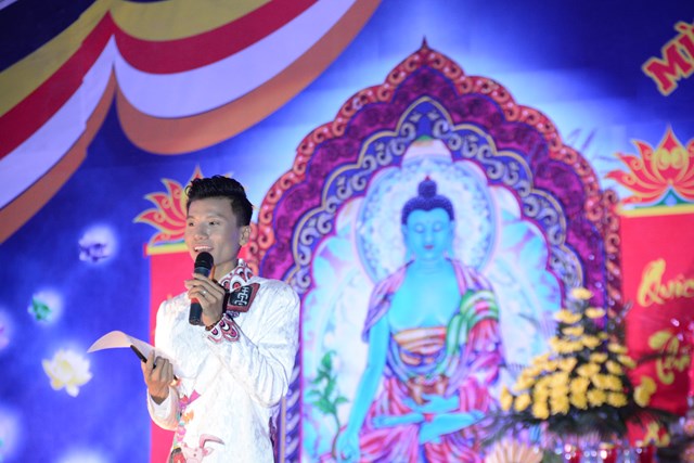 Sau lời phát biểu của Đại đức trưởng ban tổ chức là các tiết mục văn nghệ do các văn nghệ sỹ đến từ thành phố Hồ Chí Minh biểu diễn: Ca sỹ Quang Hà, ca nhạc sỹ Phật tử Quý Luân cùng với đó là sự xuất hiện của ca sỹ Phật tử Tiến Bình ( CLB thanh thiếu niên Phật tử chùa Quán Sứ), với các ca khúc ca ngợi công hạnh của chư Phật, chư đại Bồ Tát và ca ngợi chư Tăng, ca ngợi tình mẫu tử, phụ tử thiêng liêng…Đặc biệt là các ca khúc do ca sỹ Quang Hà thể hiện đã được các bạn sinh viên hưởng ứng rất nồng nhiệt.