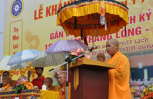 Đại đức Thích Minh Trí bày tỏ lòng tri ân đối với chư tôn đưc tăng ni Phật tử và các cấp chính quyền đã giúp đỡ đóng góp tịnh tài, tịnh vật để ngôi Tam bảo được to lớn và nguy nga thành tựu tốt đẹp như ngày hôm nay.