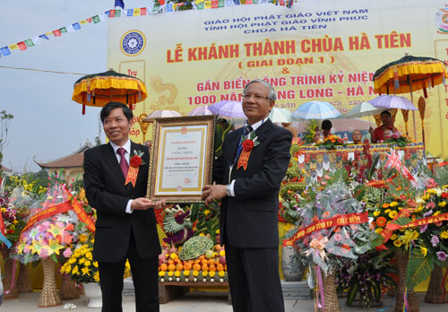 Nhân dịp này ông Trần Ngọc Tư – phó chủ tịch UBND tỉnh phát biểu và tặng hoa chúc mừng Đại đức trụ trì và ghi nhận những đóng góp trong nhiều năm qua của Phật giáo Vĩnh Phúc vào công cuộc phát triển kinh tế xã hội và nhất là xây dựng đời sống văn hóa của Tăng ni Phật tử trong tỉnh.