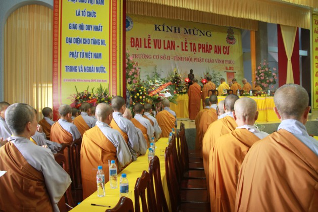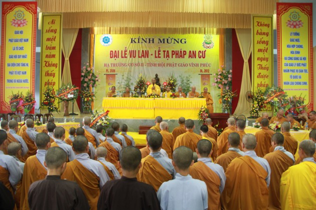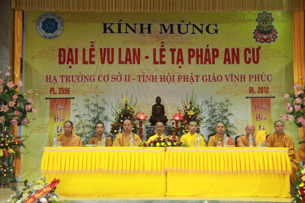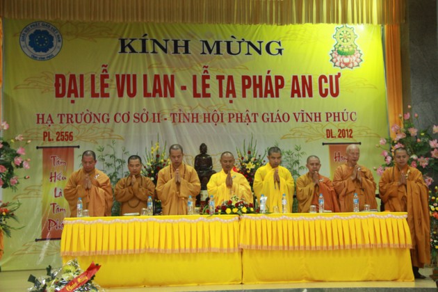Quang lâm chứng minh và tham dự buổi lễ có chư Tôn đức trong Ban trị sự Tỉnh hội Phật giáo Vĩnh Phúc, chư Tôn đức giáo thọ Thiền phái Trúc Lâm phía Bắc cùng chư Tăng ni hành giả an cư.