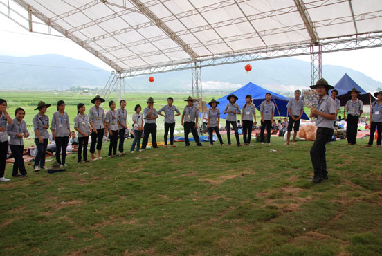 Về phía Ban quản trại có Huynh trưởng cấp Dũng – Thiện Điều – Nguyễn Thắng Nhu – Uỷ viên HĐTS – Phó trưởng Ban hướng dẫn Phật tử TW – Trưởng phân ban Gia đình Phật tử TW cùng quý anh chị phân ban gia đình Phật tử TW và hơn 600 trại sinh thuộc gia đình các tỉnh thành phía Bắc cùng vể tham dự.