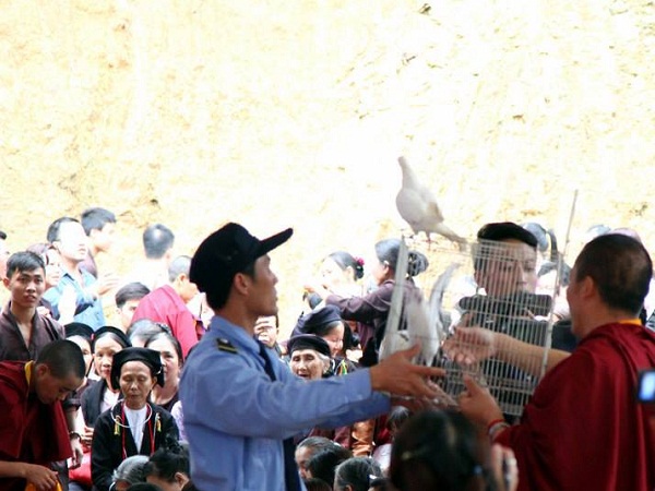 Tiếp đến là nghi thức phóng sinh. Khi được thả ra, những chú chim liền mạnh mẽ vượt ra khỏi những chiếc lồng chật hẹp để được sống tự do với không gian rộng lớn. Chúng bay lượn xung quanh Tịnh Viện và cất lên những tiếng hót thánh thót, hạnh phúc.