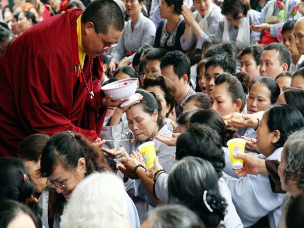 Sau khi thực hiện xong nghi lễ Quán đỉnh, các Phật tử đã đón nhận những vật phẩm, những món quà có ý nghĩa do Đức Pháp Vương Gyalwang Drukpa gia trì.
