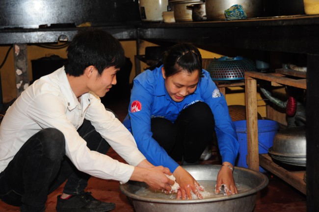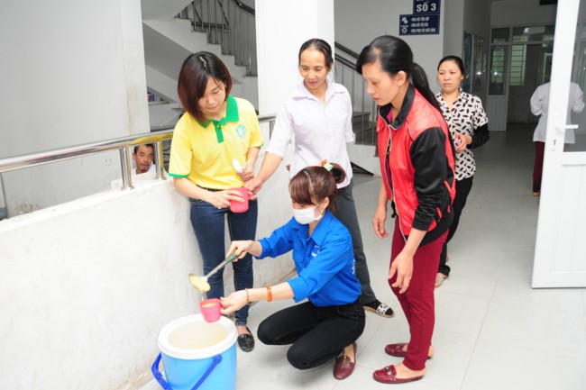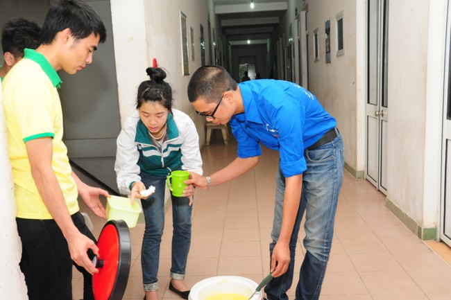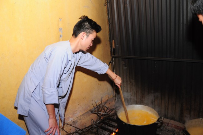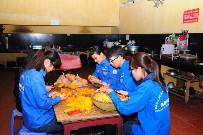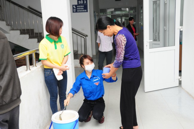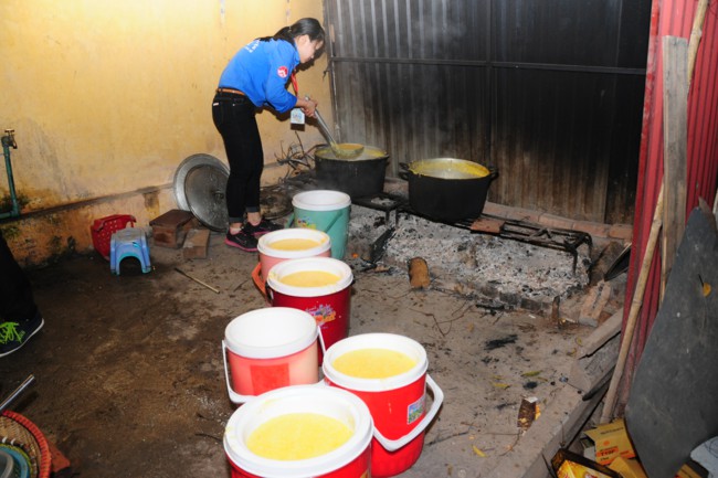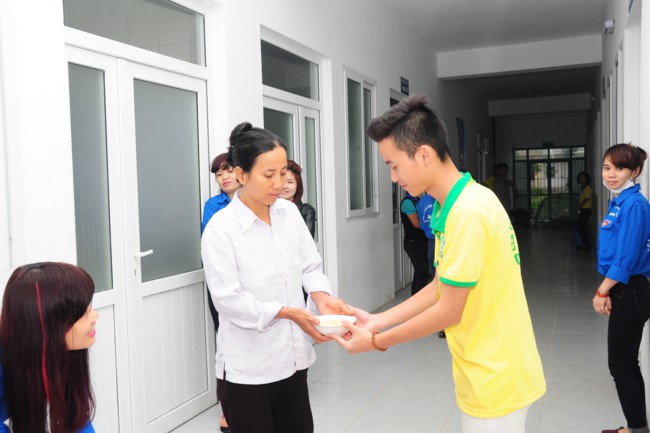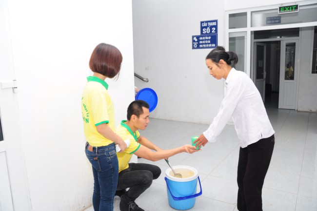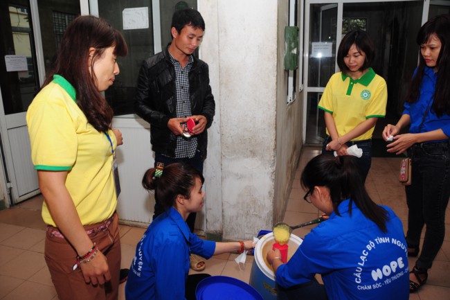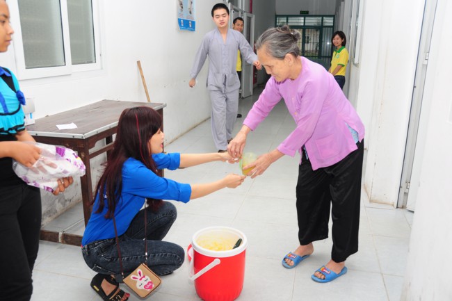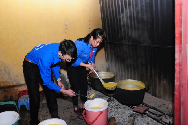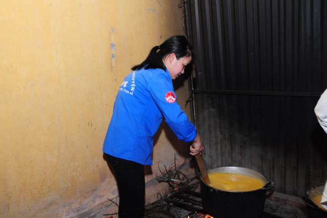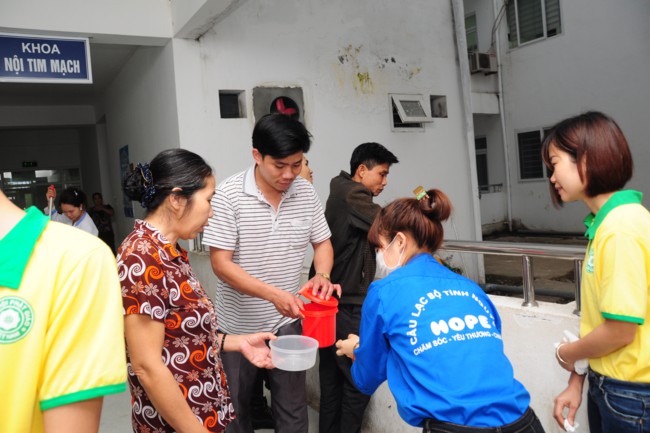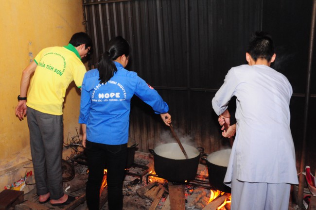 Buổi phát cháo từ thiện có sự tham gia của các bạn thanh thiếu niên Phật tử đang sinh hoạt, tu tập tại chùa Tích Sơn, tỉnh Vĩnh Phúc và các bạn học sinh, sinh viên của CLB tình nguyện Hope.