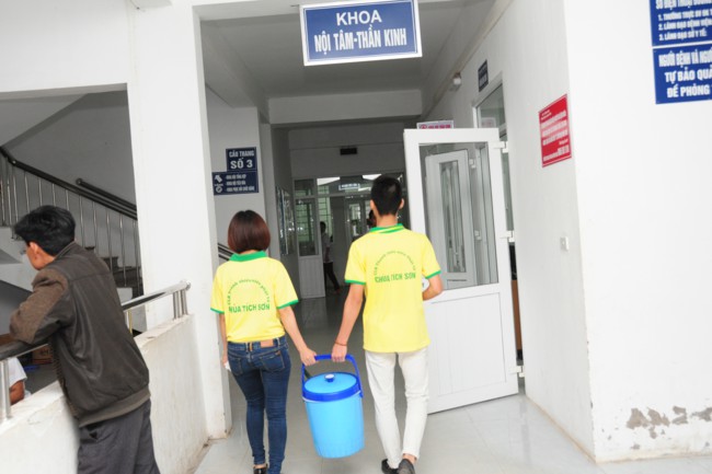 Bạn Nguyễn Thị Ngọc Lan còn cho biết thêm: “ Trước kia các bạn trong clb tình nguyện Hope nấu cháo bằng đồ ăn mặn cho các bệnh nhân nhưng khi các bạn đến bạch với thầy trụ trì chùa Tích Sơn để xin thầy hỗ trợ về kinh phí cũng như địa điểm nấu cháo thì các bạn đã được thầy trụ trì đồng ý và thầy đã khuyên các bạn là mình nên nấu cháo chay cho các bệnh nhân, thay vì nấu cháo thịt như trước kia thì các bạn có thể nấu cháo bí ngô, cháo đỗ xanh, đỗ đen…từ đó tăng thêm tấm lòng từ bi, hướng thượng, hướng thiện cho giới trẻ.”