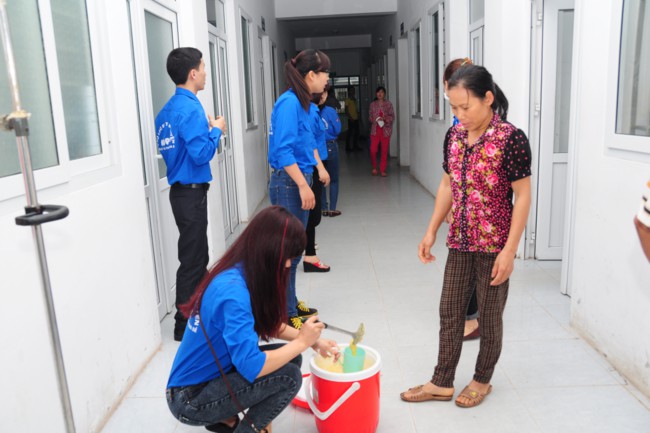 Để chuẩn bị chương trình này, các bạn phải tập trung tại chùa Tích Sơn vào tối thứ 7 hàng tuần chuẩn bị nguyên liệu để 3 giờ sáng nấu cháo và cứ vào mỗi buổi sáng sớm chủ nhật hàng tuần là các bạn lại xuất phát từ chùa lên đường đến Bệnh viện đa khoa tỉnh Vĩnh Phúc phát cháo cho các bệnh nhân với gần 400 suất cháo được các bạn chia từng nhóm và phát trong 1 giờ đồng hồ cho các khoa: Tim mạch, khoa sơ sinh, khoa chấn thương – chỉnh hình, khoa sản nhi và khoa ung bướu…Ngoài việc phát quà cho các bệnh nhân thì các bạn còn biết động viên, thăm hỏi, chi sẻ với các bệnh nhân để các bệnh nhân yên tâm trong quá trình điều trị.