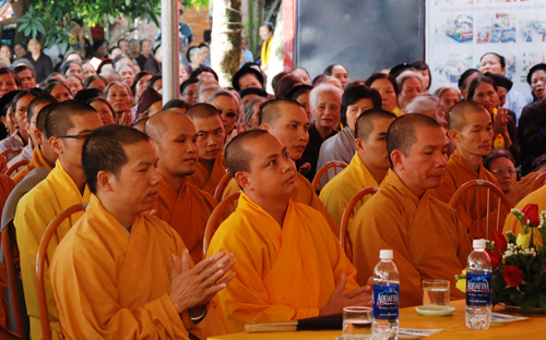 Quang lâm và chứng minh buổi lễ có Thượng toạ Thích Thanh Duệ – Trưởng ban Trị sự THPG Vĩnh Phúc, Thượng toạ Thích Thanh Điện – Phó ban thường trực Ban Hướng dẫn Phật tử TW, Thượng toạ Thích Thanh Hưng – Chánh văn phòng Ban Hướng dẫn Phật tử Trung ương phía Bắc, cùng đông đảo sự hiện diện của chư Tôn đức Tăng ni BTS Phật giáo tỉnh Vĩnh Phúc, Phú Thọ, Thái Nguyên, Quảng Ninh… và các vị trụ trì của các chùa và tự viện trong toàn tỉnh.