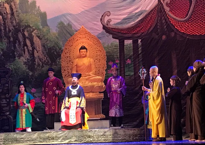 NSND Lệ Ngọc (áo xanh) trong vai công chúa Diệu Thiện