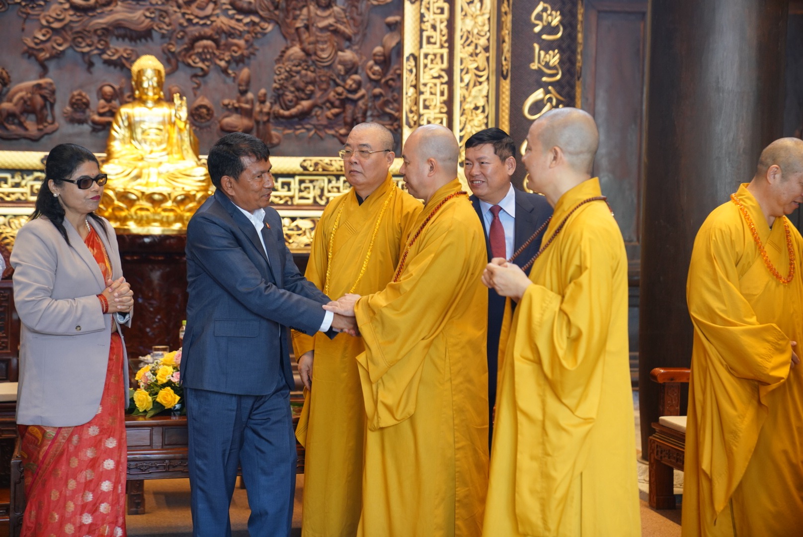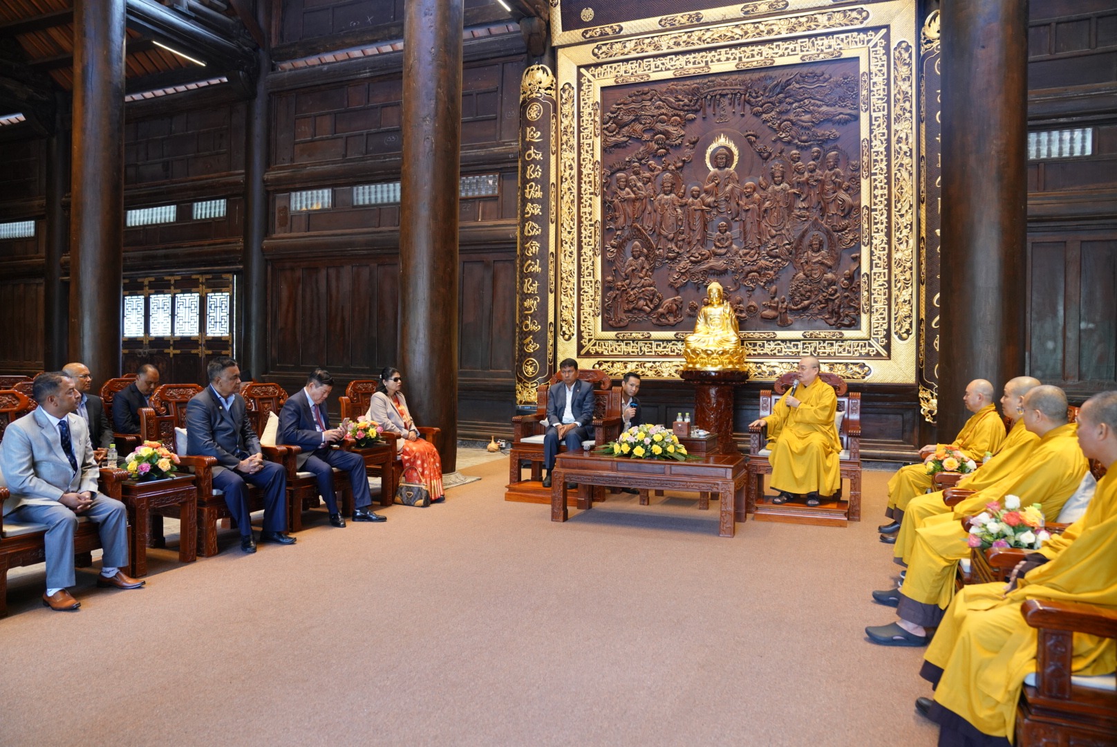 Sáng 15/12/2023, tại chùa Bái Đính, Hoà thượng Thích Thanh Nhiễu, Phó Chủ tịch Thường trực Hội đồng Trị sự GHPGVN; Thượng toạ Thích Đức Thiện, Phó Chủ tịch – Tổng Thư ký HĐTS, Chư tôn đức Văn phòng Trung ương Giáo hội tiếp thân mật Đoàn đại biểu Hội đồng Hòa bình và Đoàn kết Nê-pan.
