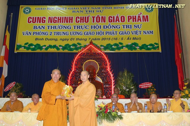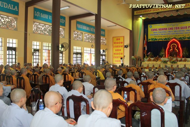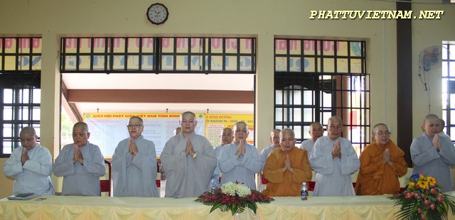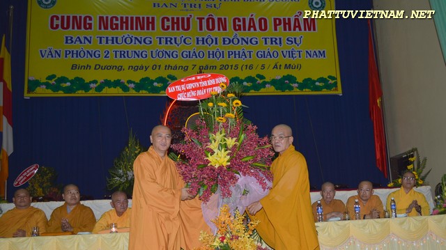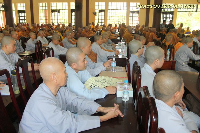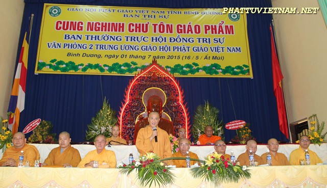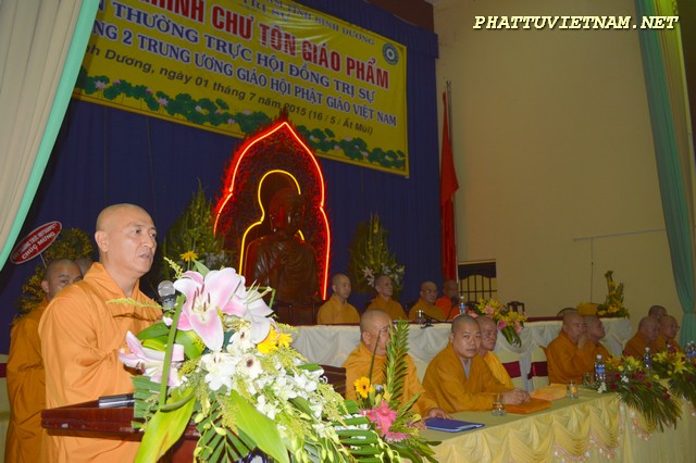 Sau lời phát biểu chào mừng của Thượng tọa Thích Huệ Thông- Trưởng BTS Phật giáo tỉnh, Ban Thư ký báo cáo tóm tắt hoạt động Phật sự tỉnh Bình Dương thông tri đến chư Tôn đức lãnh đạo Ban Thường trực TƯGH cũng như toàn thể chư Tôn đức tăng ni hiện diện.