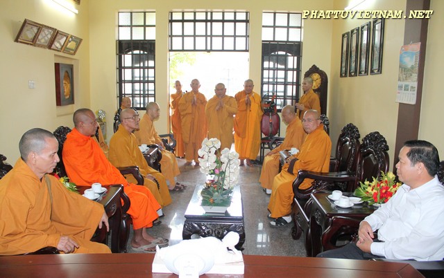 Tiếp đoàn có TT. Thích Huệ Thông- UV. Thường trực HĐTS, Trưởng BTS GHPGVN tỉnh Bình Dương; HT. Thích Thiện Duyên- Phó Trưởng ban Thường trực BTS GHPGVN tỉnh cùng chư Tôn đức toàn BTS, chư Tôn đức Trưởng ban trực thuộc và chư Tôn đức Trưởng ban 9 huyện thị thành.