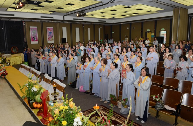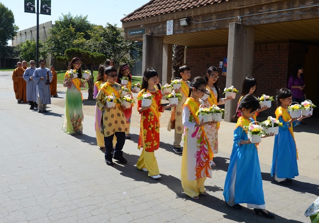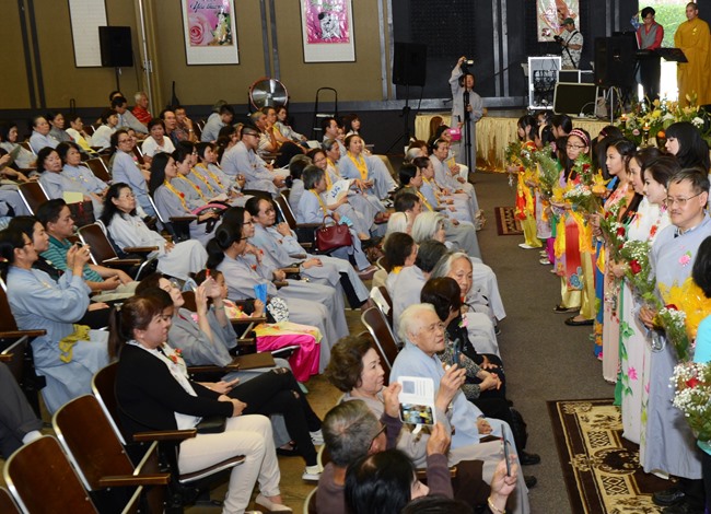 Cung đón chư Tôn đức quang lâm. Phật tử vân tập về hội trường Yerba Buena High School Theater, San Jose.