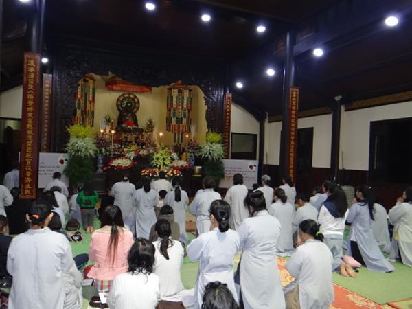 Tâm sự với chúng tôi , chị hoan hỷ cho biết : mọi năm vào ngày rằm tháng tư này, chị lên chùa dự lễ và kỳ siêu cho những người thân đã quá vãng . Nhưng năm nay, chị chỉ gởi danh sách xin cầu siêu thôi , còn việc cúng kiến thì làm ở nhà, chùa mấy ngày này thì đông lắm, nhưng ồn ào … nhiều nơi cúng xong bà con nhảy vào tranh giành đồ cúng thí làm đạo tràng mất trang nghiêm … nên năm nay, con muốn ở nhà cho yên tĩnh. Hơn nữa con cháu trong nhà không thạo lắm về việc thờ cúng, vì vậy nhân cơ hội này , con tập hợp các cháu lại để chỉ dạy cho chúng hiểu về ý nghĩa sâu xa của chữ hiếu trong đạo Phật . Từ đó mong rằng các cháu sẽ ý thức và có trách nhiệm hơn đối với tổ tiên đã quá cố, ông bà, cha mẹ còn hiện tiền…”.