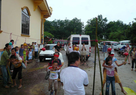 Trò chơi này làm tôi liên tưởng đến hình ảnh của chị Tấm hiền lành đã được ông Bụt giúp đỡ. Khi lựa đậu xong các em phải mút nước bằng tay đổ vào chai là xong cuộc thi. Giải thưởng cũng chỉ là những phần quà bánh kẹo ít ỏi, nhưng tôi thấy hiển rõ trên khuôn mặt các bạn trẻ một niềm vui vô hạn.