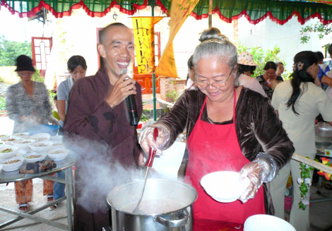 Đại đức Thích Trí Tâm cùng Phật tử tại làng ẩm thực