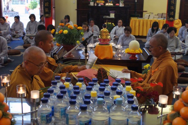 Sáng mùng một tết, khóa lễ câù an và chúc tết đầu năm đã được diễn ra trên chánh điện, trong không khí trang nghiêm ấm cúng của ngày đầu xuân, chúng hội đã được nghe những lời pháp nhũ qua Thông Bạch xuân Tân Mão và Đạo từ của Hoà Thượng Hội Chủ.