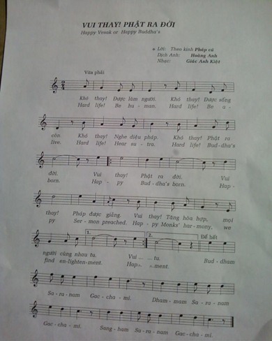 Không biết có phài vô tình hay không mà bài hát “Vui Thay Phật Ra Đời” của Giác Anh Kiệt có đúng ba mươi hai khung nhạc và bảy dòng nhạc tròn vạnh! Đó là ba mươi hai tướng hảo cũa đức Bổn Sư Thích Ca Mâu Ni Phật và là vị Phật thứ bày trong “Thất Cổ Phật” thị hiện ở cõi ta Bà này. Nếu đúng như thế thì đây là một nét tinh túy độc đáo của của người lám âm nhạc Phật giáo cần được lưu ý.