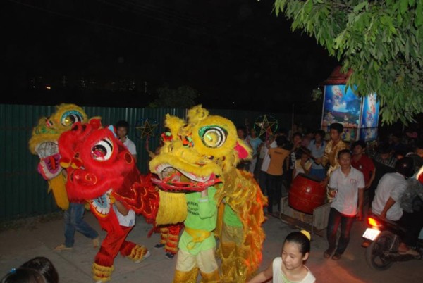 20h đoàn lân sư tử và rước đèn ông sao về tới chùa Bằng.