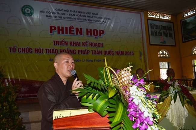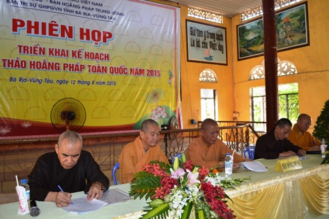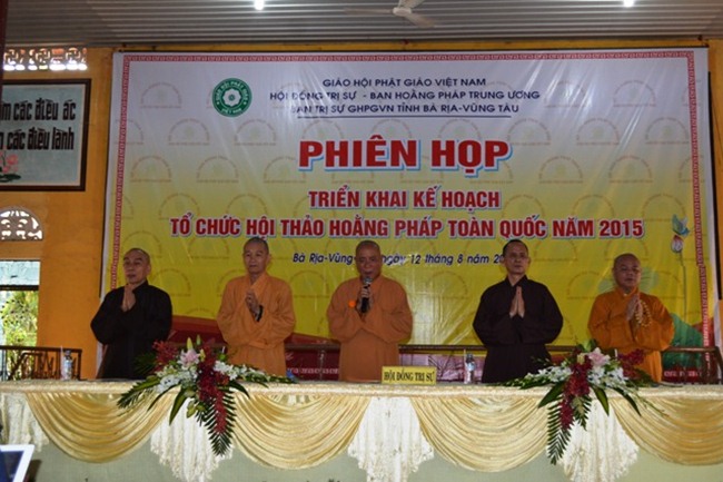 Với chủ đề Sứ Mệnh Hoằng Pháp – Hội Nhập và Phát Triển, tại phiên họp (lần thứ ba) triển khai kế hoạch tổ chức Hội Thảo Hoằng Pháp toàn quốc năm 2015 giữa BHPTW và BTS.GHPGVN tỉnh BR.Vũng Tàu. Sau ba tiếng thảo luận cũng như đóng góp ý kiến – chư tôn đức thống nhất một số nội dung chính được ghi nhận như sau: