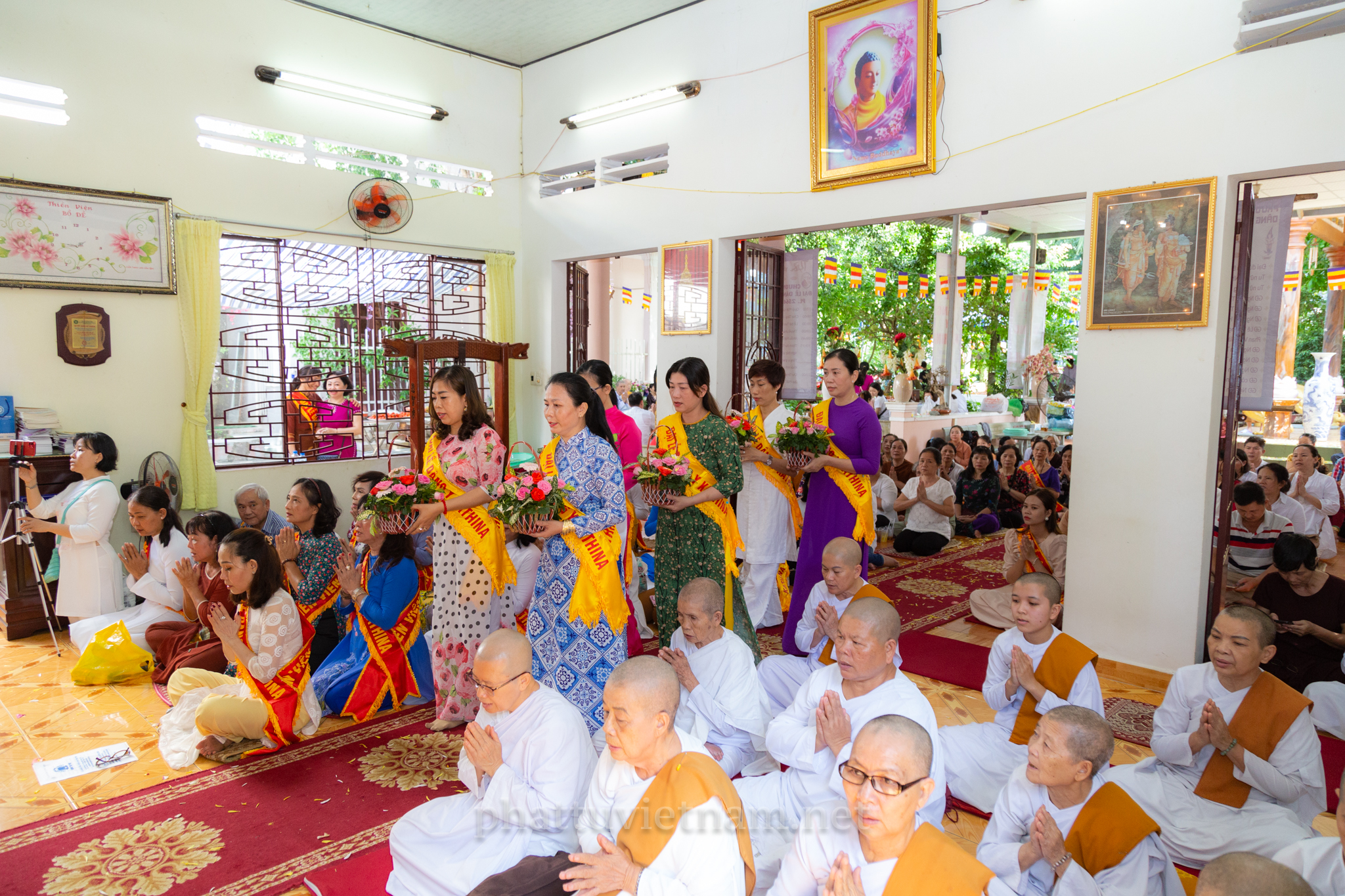 Quang lâm chứng minh buổi lễ có HT.Thiện Nhân – trụ trì Xá Lợi Phật Đài (Q.9, Tp.HCM), TT.Giác Trí – Phó BTS GHPGVN tỉnh Vũng Tàu, trụ trì chùa Hộ Pháp (Tp.Vũng Tàu), TT.Chánh Minh – trụ trì chùa Bồ Đề (P.1, Tp.Vũng Tàu) cùng chư tôn đức Tăng, tu nữ các chùa và đông đảo Phật tử đến tham dự.