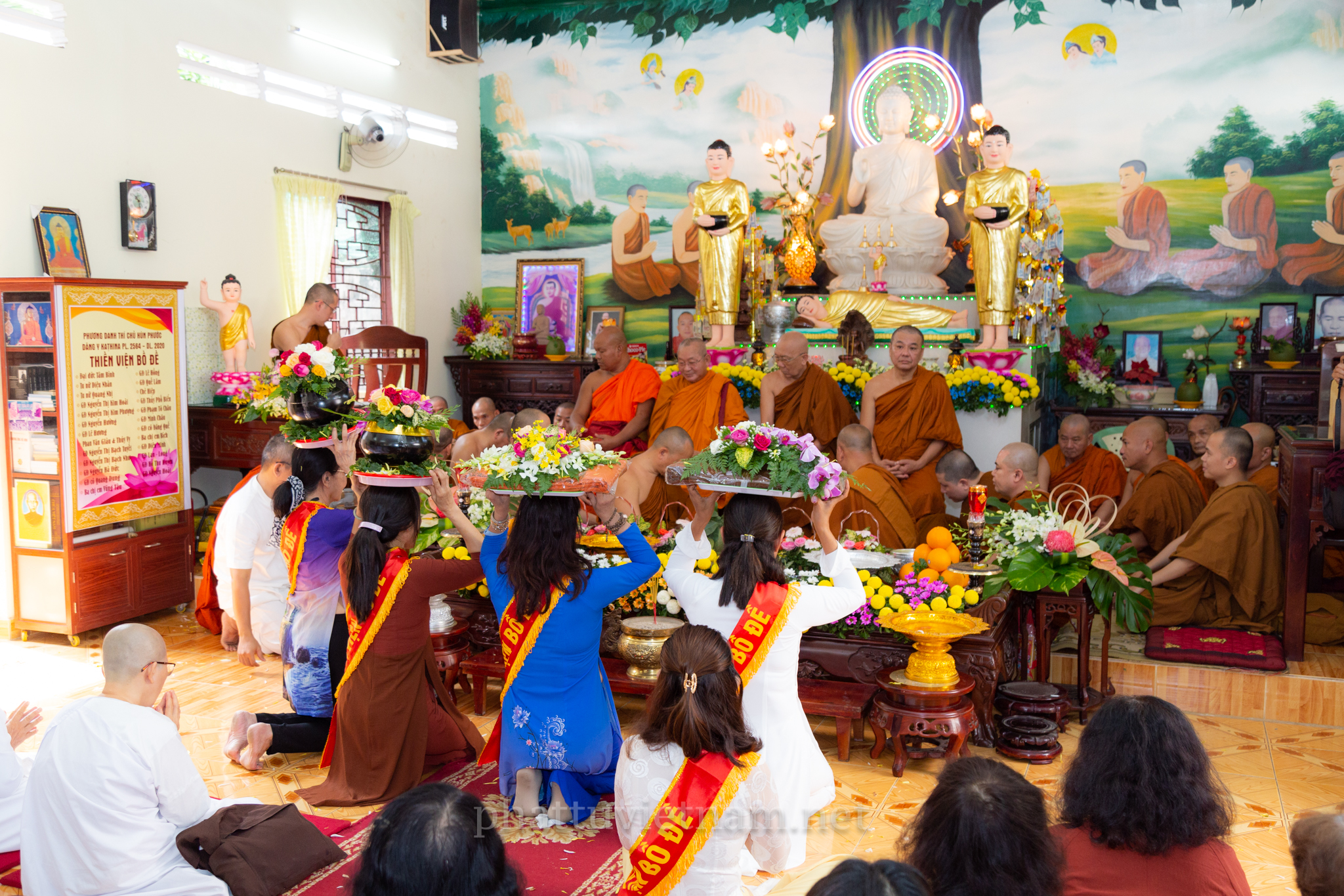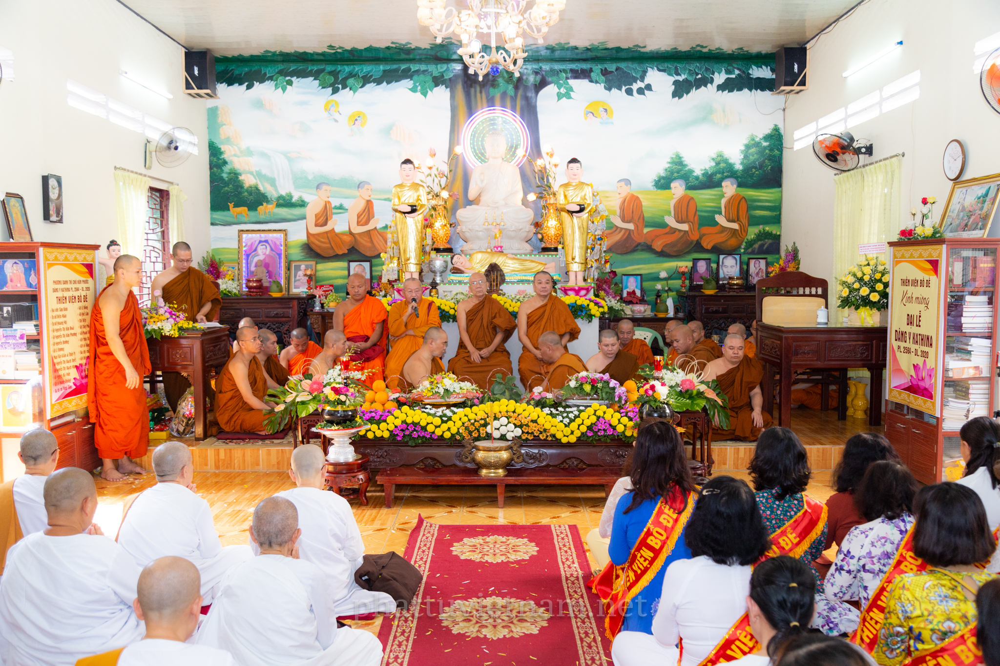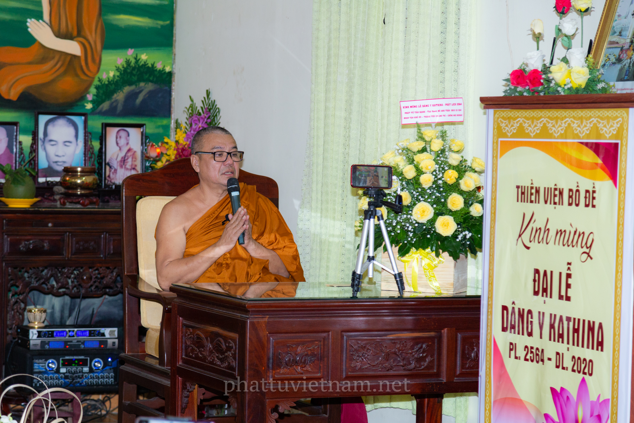 Sau nghi thức lễ bái Tam Bảo, Ban cung nghinh đã cung thỉnh TT.Giác Trí – trụ trì chùa Hộ Pháp (Tp.Vũng Tàu) quang lâm chánh điện thiền viện Bồ Đề ban thời pháp thoại về “nguồn gốc, ý nghĩa dâng y Kathina” đến đại chúng.
