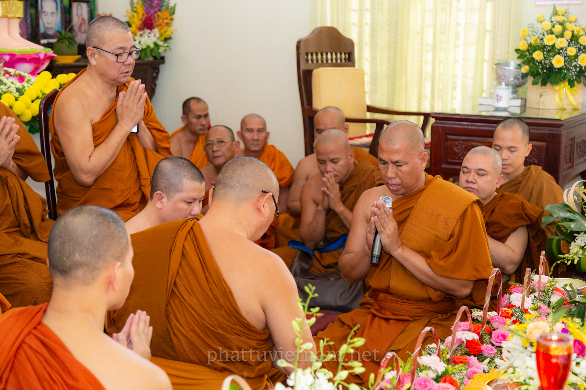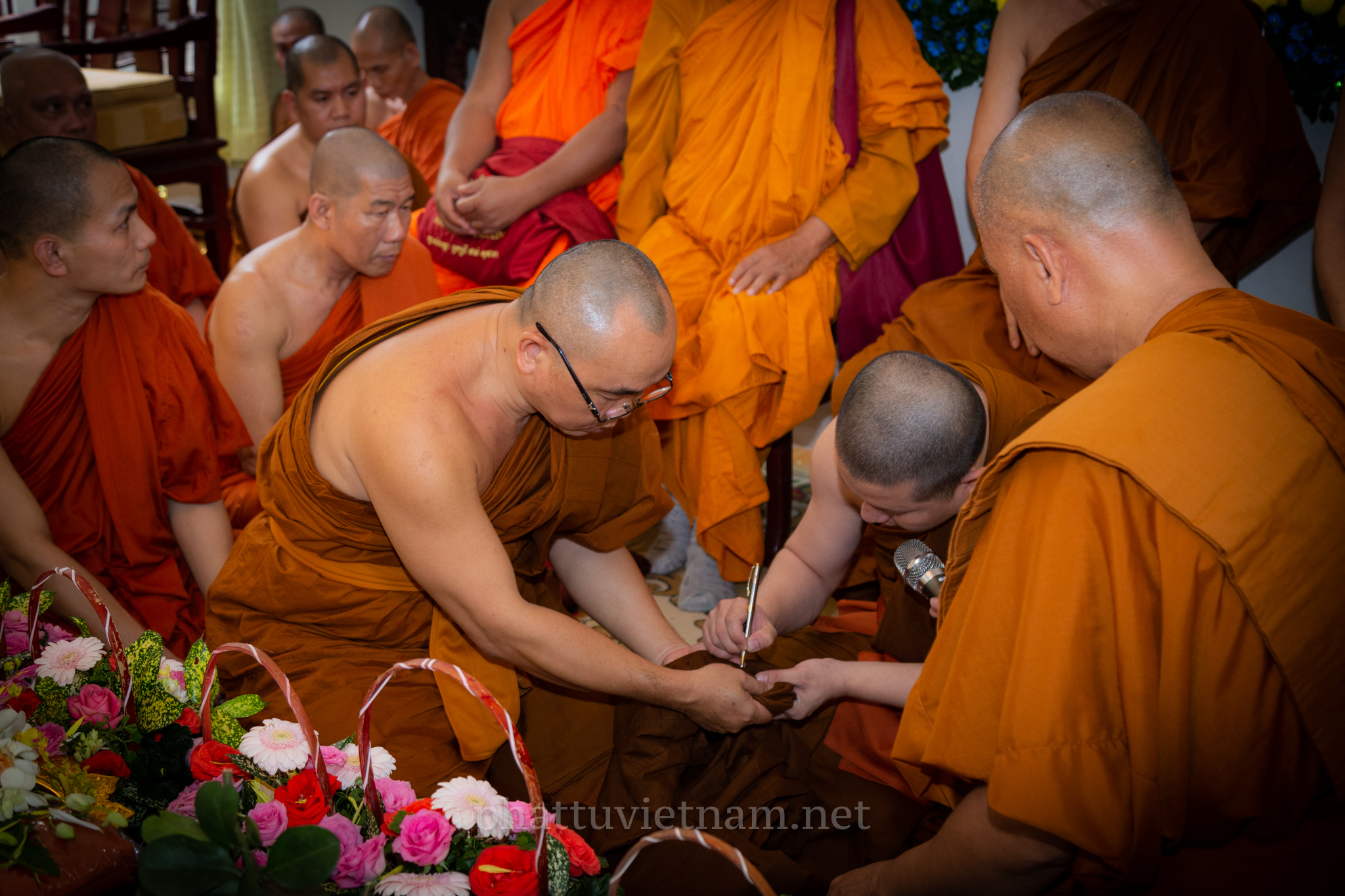 Đại diện chư Tăng nhập hạ tại thiền sẽ đảm nhận thọ y mới sau tuyên ngôn Tăng sự từ TT.Thiện Đạt và TT.Tâm Lượng.