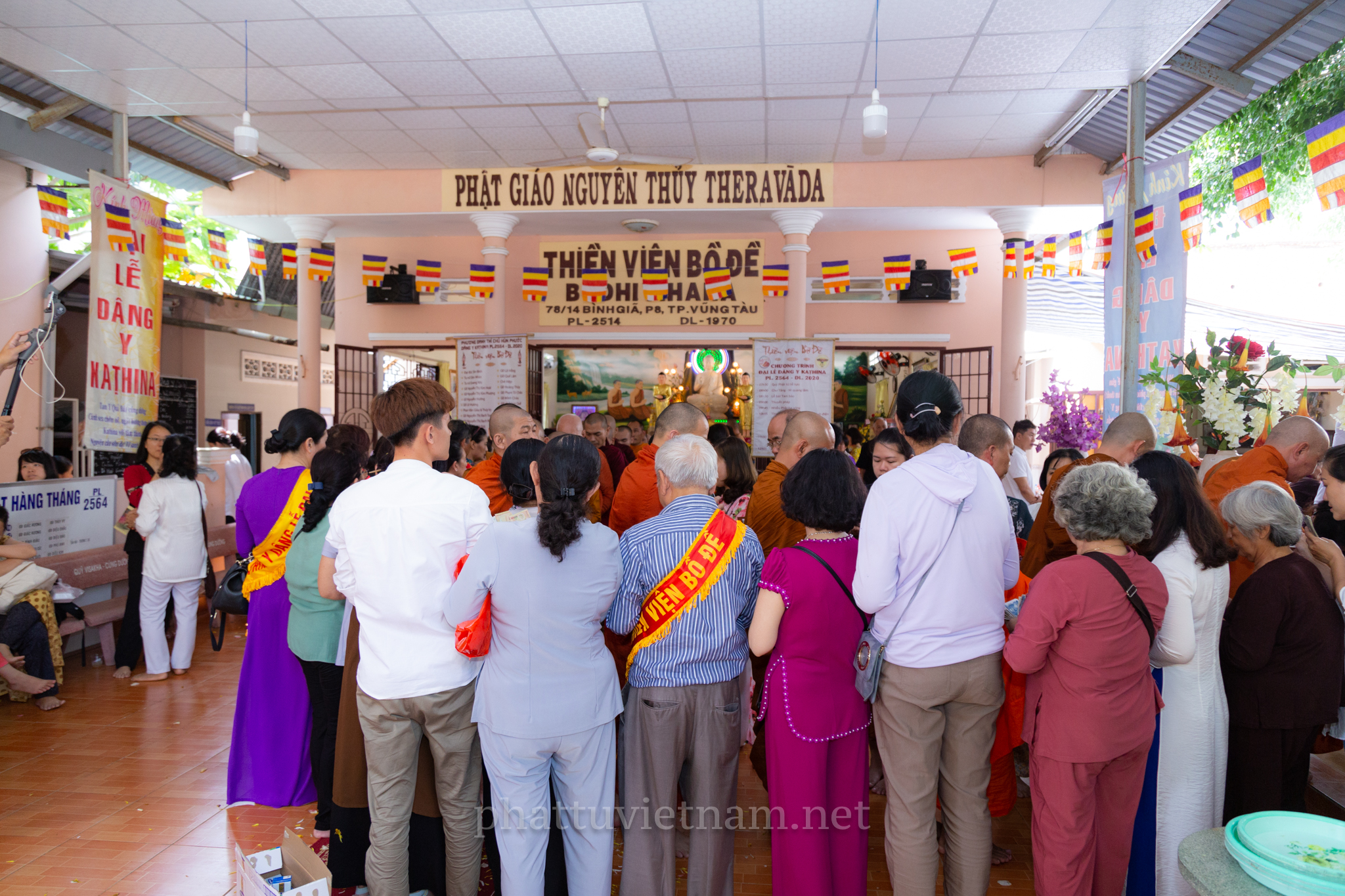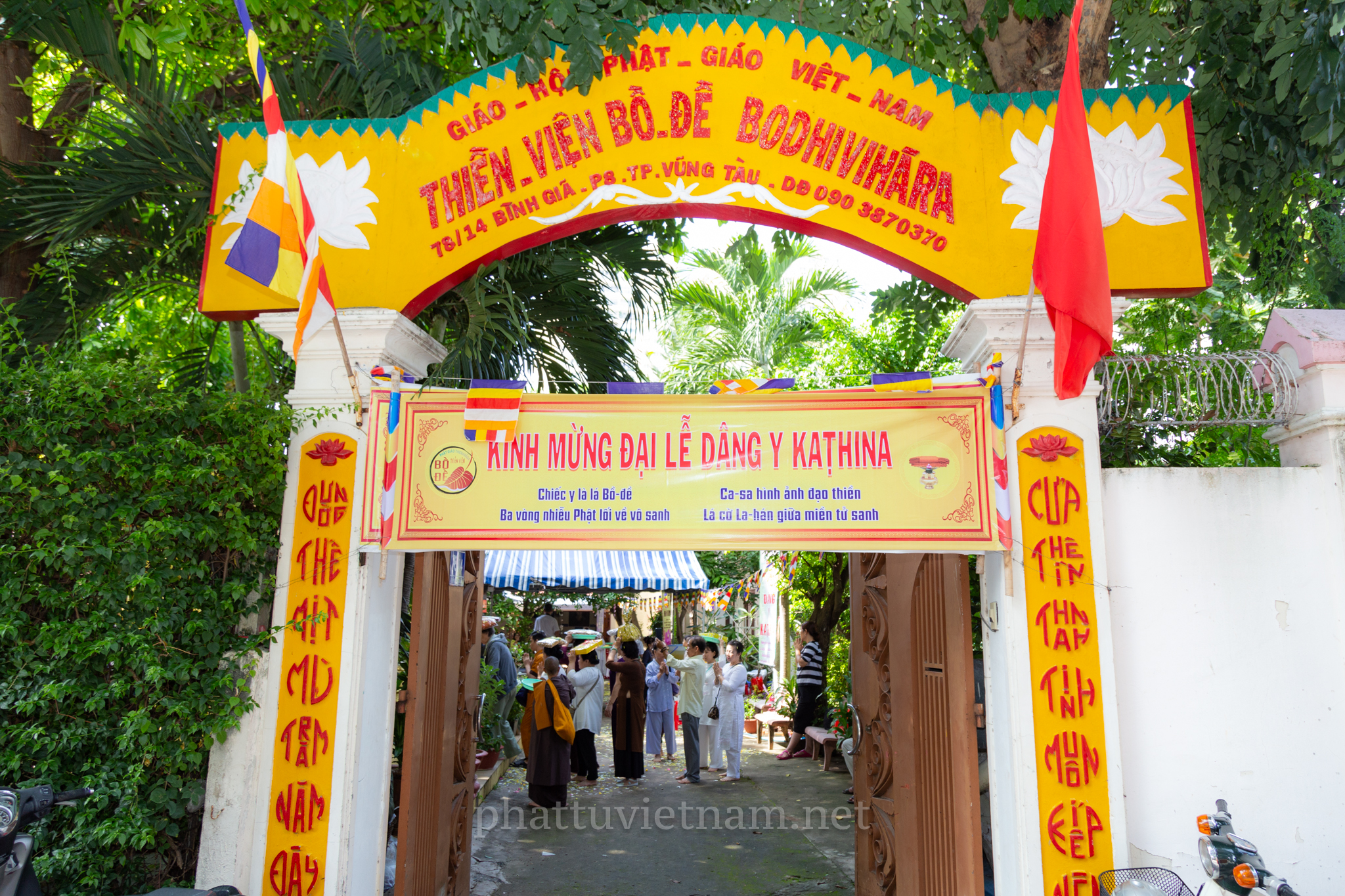PTVN – Sáng nay ngày 8/11 (nhằm 23/9 Canh Tý), tại thiền viện Bồ Đề (số 78/14 đường Bình Giã, P.8, Tp.Vũng Tàu) đã trang nghiêm diễn ra lễ dâng y Kathina cúng dường đến chư Tăng đã an cư 3 tháng mùa mưa tại đây với sự phát tâm của các thí chủ cúng dường đến chư Tăng.