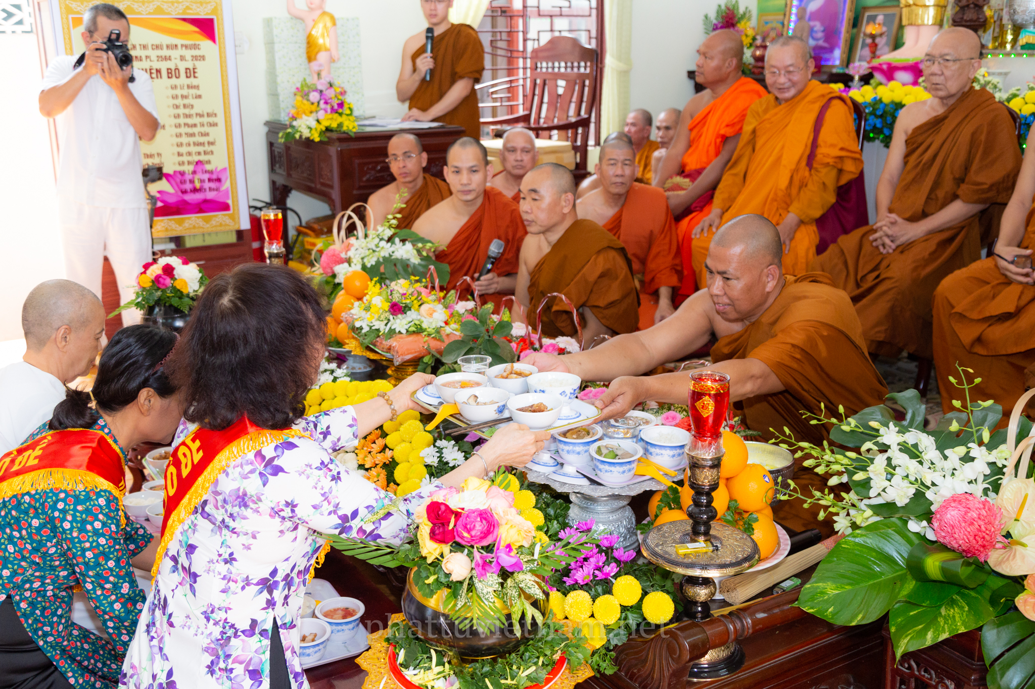 Buổi lễ dâng y PL.2564 thành tựu viên mãn sau khi Ban Tổ chức cung thỉnh chư Tôn đức Tăng quang lâm chánh điện và tiến hành nghi thức trao y.