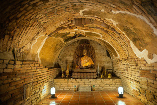 Từ lối vào đường hầm, khám phá sâu hơn khách có thể bắt gặp một cầu thang dẫn lên bảo tháp kiến trúc Lanna cổ cao ngất. Trên bàn thờ đặt trong chính điện của bảo tháp đặt các bức tượng Phật nhỏ với nhiều hình dạng khác nhau. Theo truyền thống, một bảo tháp chứa các cổ vật linh thiêng hoặc xá lợi của Đức Phật, trong khi cấu trúc biểu tượng của nó đại diện cho sự giác ngộ của ông. Các nhà sư sẽ khoanh tròn bảo tháp theo chiều kim đồng hồ trong khi đọc kinh.