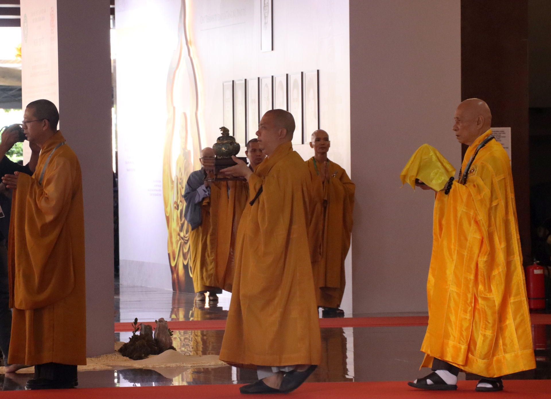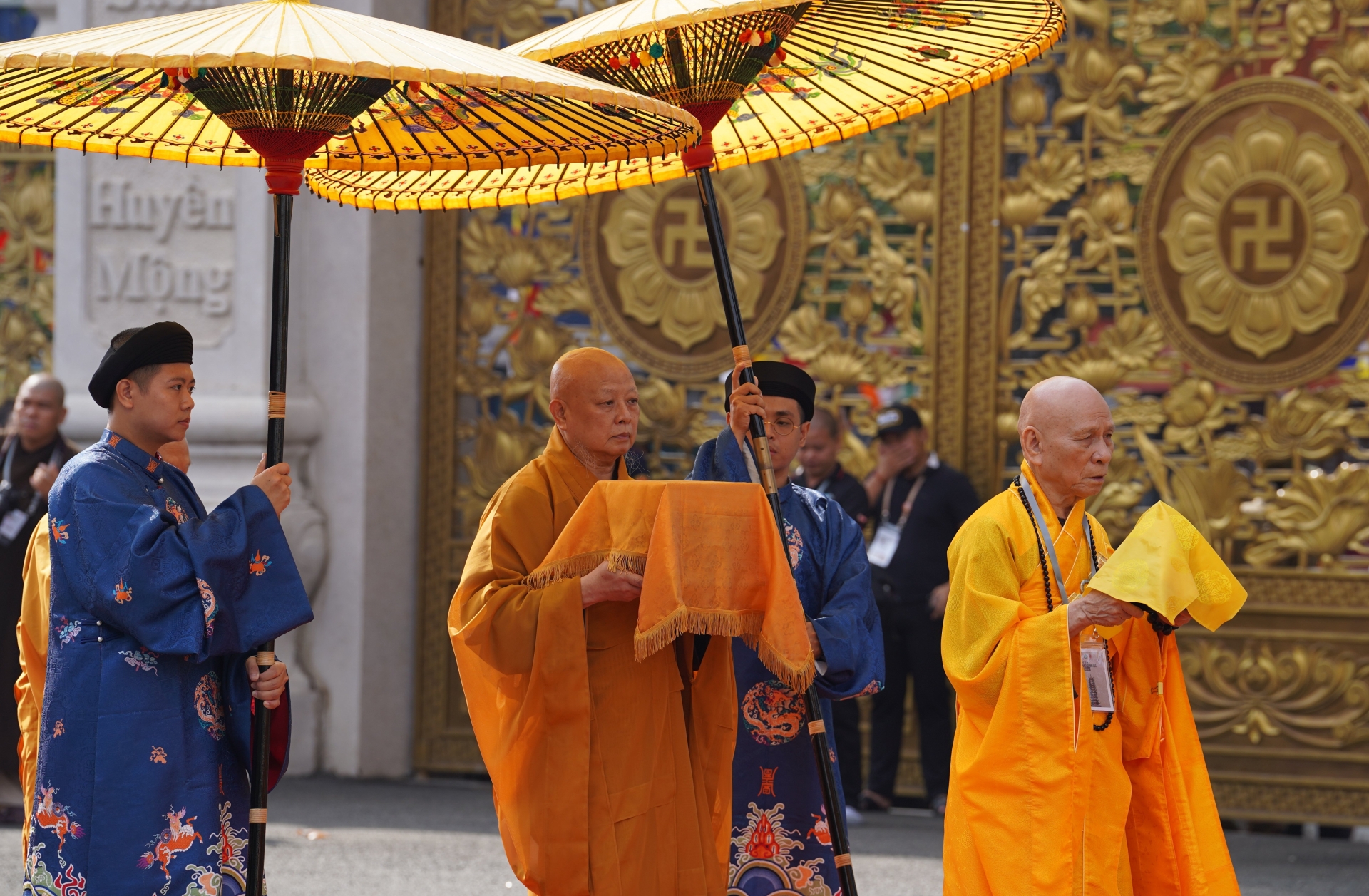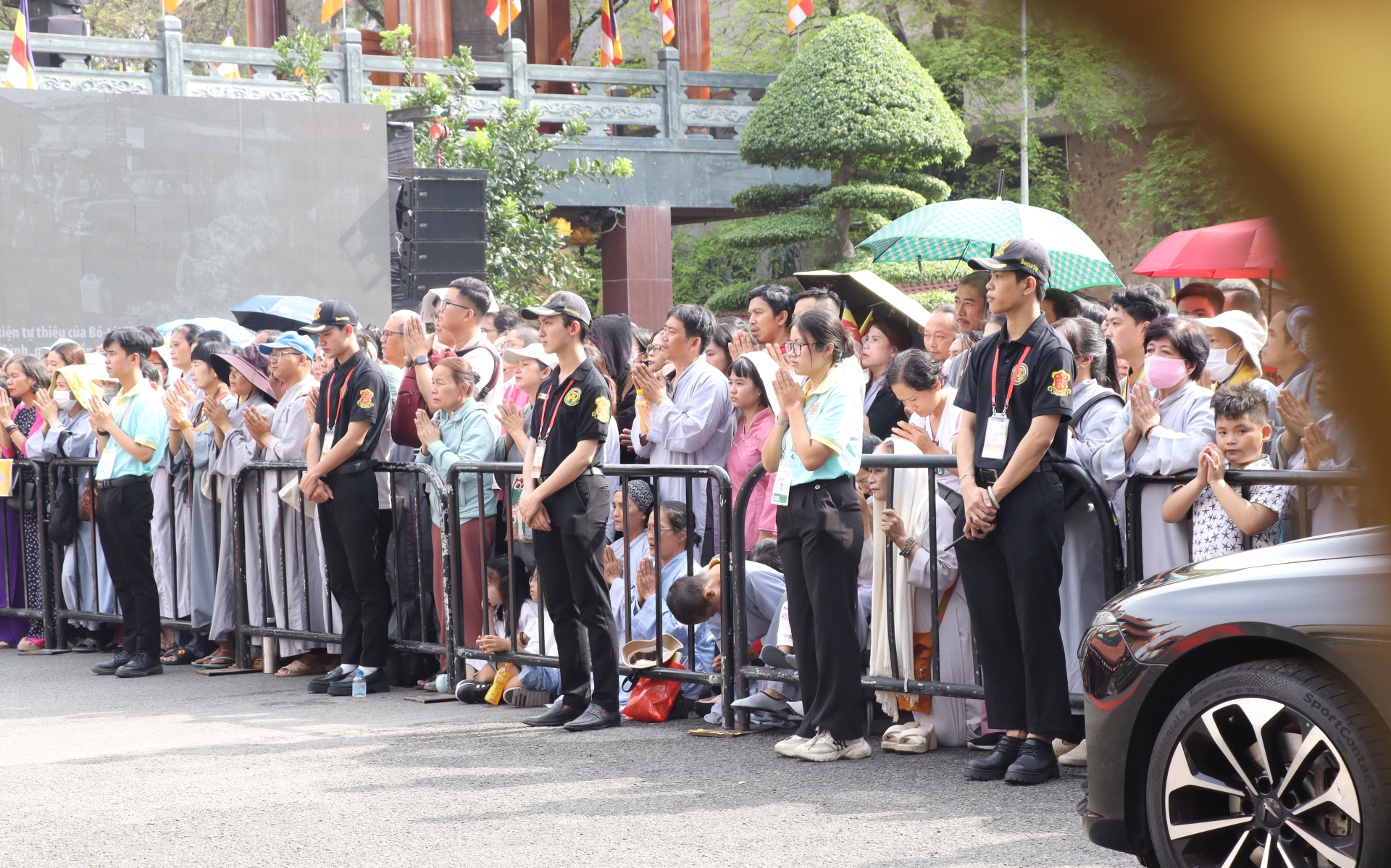 Lễ cung thỉnh diễn ra trong không khí trang nghiêm. Từ sớm, đông đảo Phật tử và người dân đã đến đứng bên ngoài để có thể chứng kiến buổi lễ.