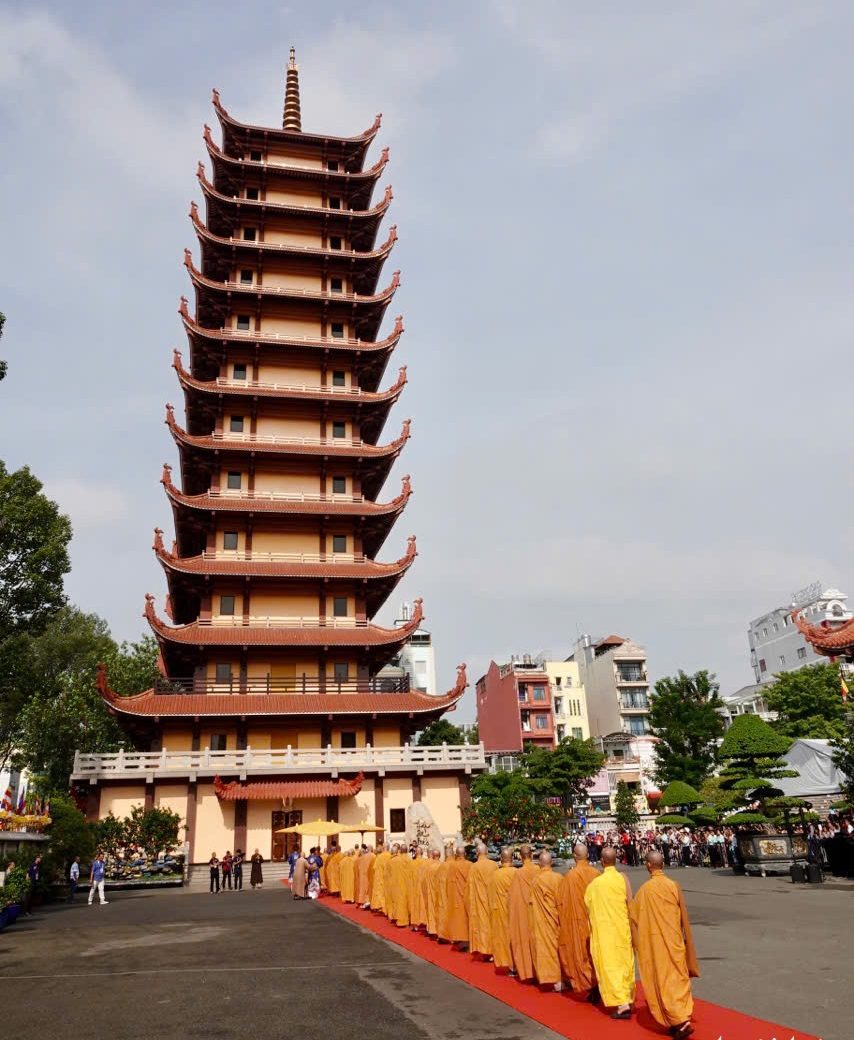 Đức Pháp chủ Giáo hội Phật giáo Việt Nam Thích Trí Quảng chủ trì buổi lễ, cùng sự tham dự của chư tôn giáo phẩm Hội đồng Chứng minh, Hội đồng Trị sự, Ban Nghi lễ trung ương và Ban Trị sự Giáo hội Phật giáo Việt Nam TP.HCM.