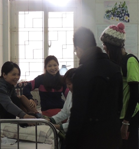 Do chưa đến lịch và cũng vì thời tiết giá lạnh nên ngày đầu xuân các em ở bệnh viện nọi trú ít, mỗi phòng chỉ có 2-3 em, phòng nhiều là 5-6 em. Sự rộn ràng tươi vui của Tết dường như đã phai nhạt dần, nhường lại chỗ cho sự âu lo, vất vả của những vị phụ huynh chăm sóc các bé. Tuy nhiên, chỉ trong phút chốc, người viết được chứng kiến không khí xuân hồi sinh mạnh mẽ, một sức sống trẻ đang bùng cháy khi các bạn HSTA vào từng phòng, chúc Tết từng gia đình và tặng các em nhỏ những bao lì xì đỏ xinh với bao lời ước nguyện chứa đựng ở bên trong mong cho Tam Bảo gia hộ để các em sớm khỏi bệnh về nhà vui với gia đình.