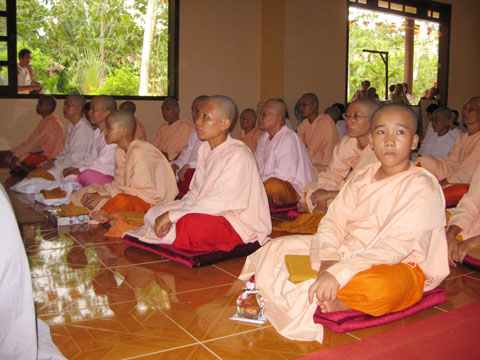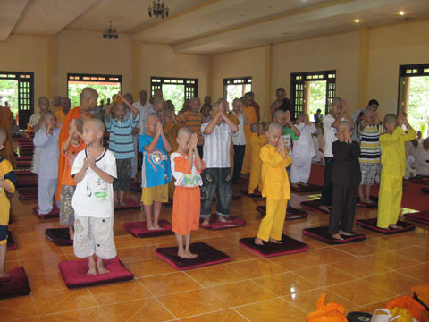 Chương trình tu học hàng ngày bắt đầu từ 4g sáng và kết thúc vào 9g tối, bao gồm: tụng kinh, ngồi thiền, thiền hành, nghe thuyết pháp, thuyết trình kệ kinh, luận đạo, lao động công quả…