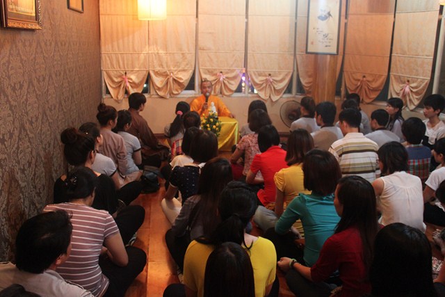 Thầy tiếp lời “Tại ngã tư Phan Đình Phùng và Lê Văn Duyệt Sài Gòn, Bồ Tát đã châm lửa tự thiêu để phản đối chính sách đàn áp Phật Giáo của chính quyền, Ngài an nhiên thi tịch trong tiếng Niệm Phật ngân vang của Tăng Ni Phật Tử, trong sự kính ngưỡng của chính cả những nhân viên công vụ đang phục vụ trong chính quyền Sài Gòn”. Cả thiền phòng đều xúc động khi nghe những lời chia sẻ từ thầy, có bạn đã không kìm được nước mắt. Có đến đây các bạn trẻ mới thấu hiểu được hạnh nguyện Từ Bi của Bồ Tát Quảng Đức, Ngài đã thiêu thân giả tạm để cúng dường cho Phật Pháp luôn trường tồn, Chánh Pháp được truyền lưu.