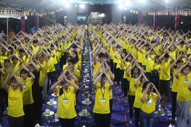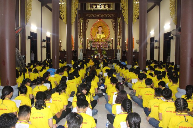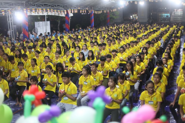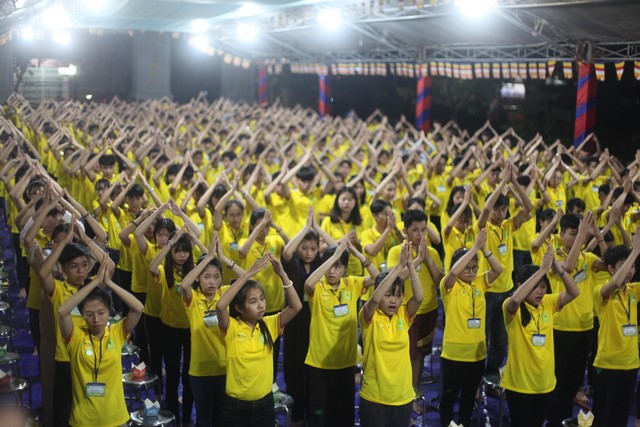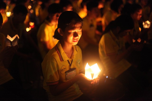 Từ đây, những ngọn nến đã được thắp sáng khắp hội chúng và như soi rọi thẳng vào tâm tư các em, đánh thức bản tánh thuần lương và hướng thiện vốn có trong mỗi em. Tiếng niệm Phật của cả đại chúng vang vang khắp không gian, dâng lên cúng dường chư Phật, chư Bồ tát khắp 10 phương thế giới với tất cả tất lòng thành. Niềm xúc cảm dâng tràn long lanh trong ánh mắt, các em rưng rưng bồi hồi ngẹn ngào xúc động… Có lẽ tự trong thân tâm các em đã dần dần khai mở một phần tâm cảm thiêng liêng… Cả hội chúng im phăng phắc, chỉ còn đó tiếng Nam Mô thành kính và ánh sáng lung linh chiếu soi cả không gian