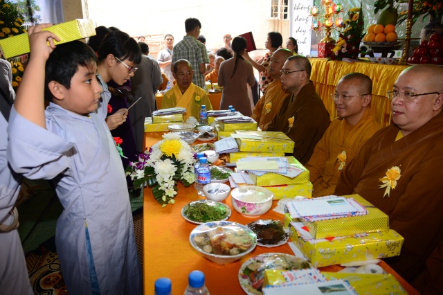 Quang lâm chứng minh và tham dự buổi lễ có TT. Thích Nhật Từ, Trưởng ban Văn hoá GHPGVN TP. HCM – Trụ trì chùa Giác Ngộ; TT. Thích Minh Nhật, Phó ban Thường trực BTS GHPGVN Q. Phú Nhuận – Trụ trì chùa Phước Lâm; TT. Thích Minh Phước – Trụ trì chùa Hưng Long, Q.4 ; TT. Thích Minh Thiện – Trụ trì chùa Bát Nhã Q.3; TT. Thích Nhật Thiện, Phó ban Thường trực BTS GHPGVN Q.10; cùng các chư Tăng Ni chùa Giác Ngộ và các chùa khác trong thành phố và trên 500 Phật tử đã có mặt tại chùa để cùng nhau tham dự lễ Vu Lan Báo Hiếu 2014.