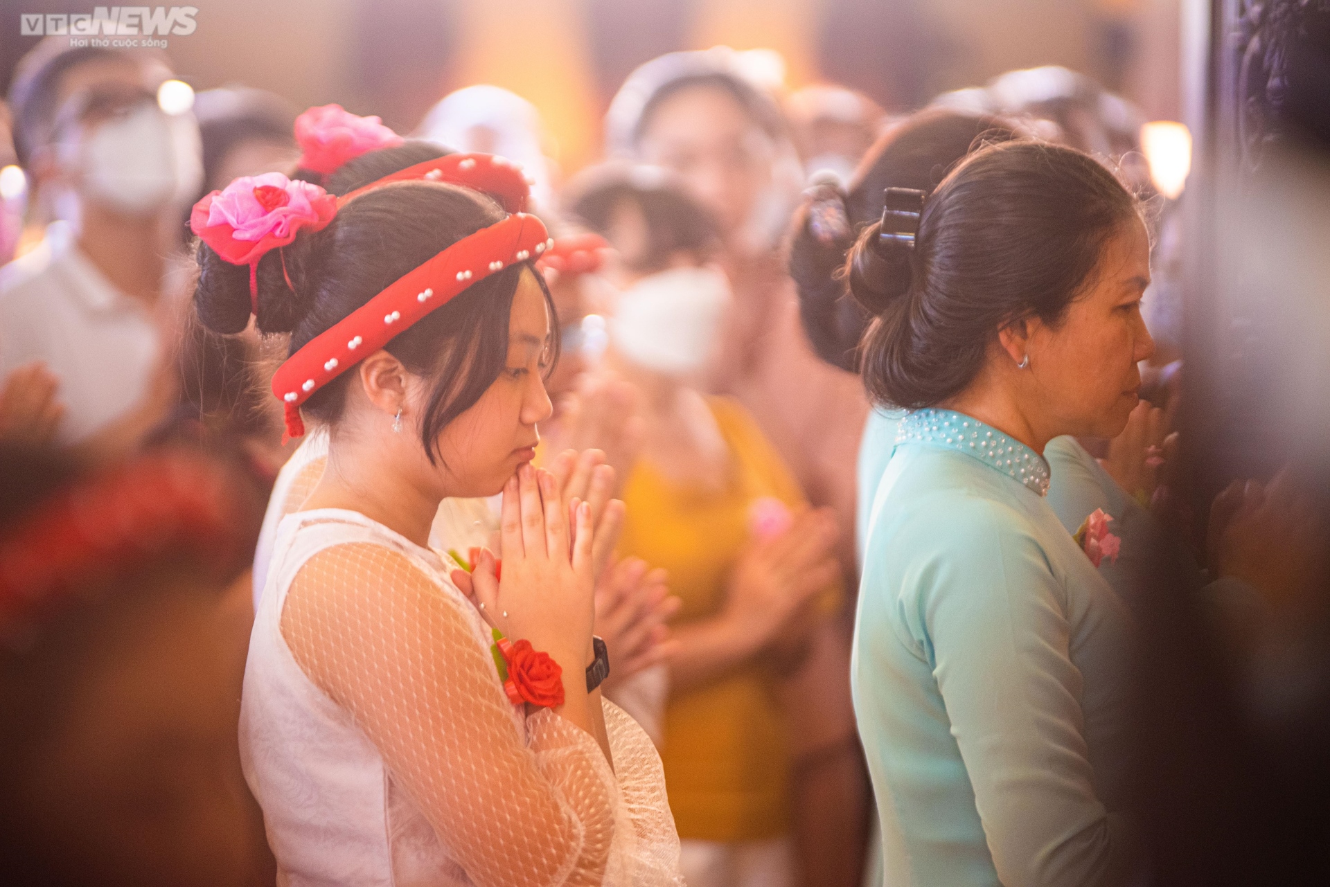 Nhiều em nhỏ được ba mẹ dẫn tới chùa tới tham gia lễ Vu lan báo hiếu cầu chúc bình an.