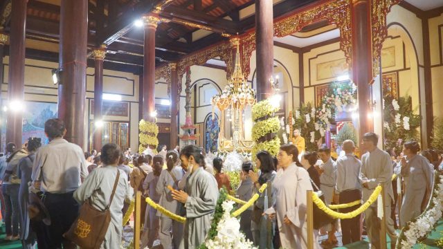 Gần sáng, mưa dần tạnh, gió nhẹ ùa về như lời đáp lại của trời đất trước lòng thành của hàng ngàn phật tử. Dòng người vẫn lặng lẽ xếp hàng, nối đuôi nhau chậm rãi bước về chánh điện.